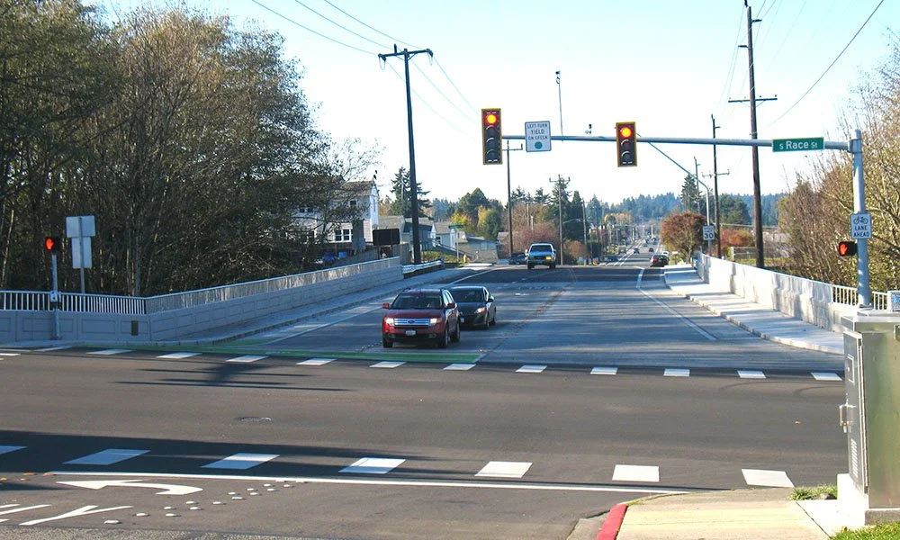This project delivered a high-priority element of the City’s long-range transportation plan to divert truck traffic away from the downtown core and improve mobility to the Olympic National Park. As prime consultant, Exeltech provided project management, civil and structural engineering design, environmental permitting, and construction management services for this bridge replacement project on Lauridsen Boulevard. The project included demolition of the existing structure; design of a new bridge with foundations using 3-ft-diameter shafts; abutment construction; installation of a 144-ft prestressed girder; concrete deck and railing construction; soldier pile walls with and without tiebacks; structural earth walls; moment slabs with traffic barrier; and bridge approach connections. Exeltech’s design of a shorter bridge with combined retaining wall/abutment addressed the site challenges collectively while reducing the project costs by 20 percent.